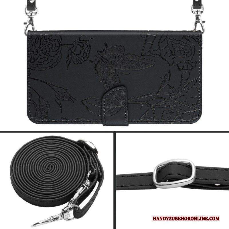 Custodia in pelle Xiaomi 12 / 12X Farfalle E Tracolla