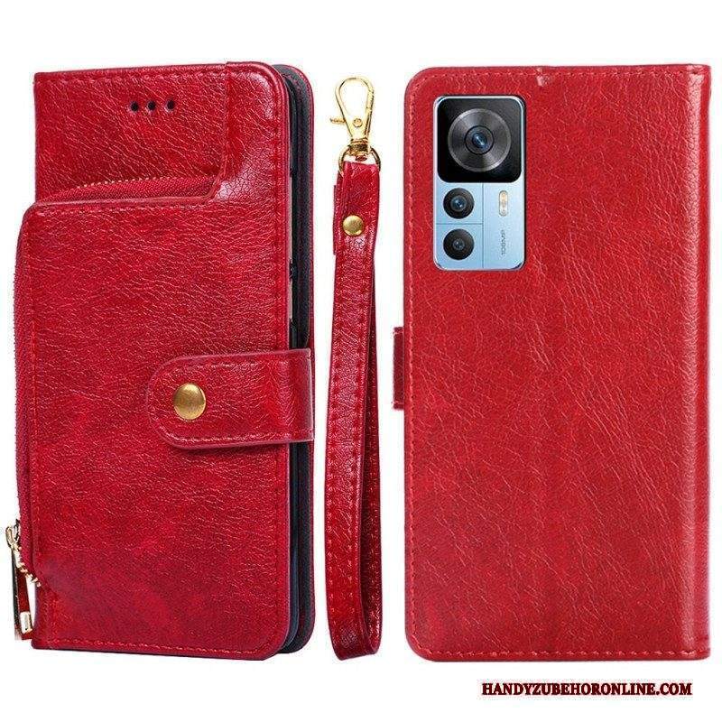 Custodia in pelle Xiaomi 12T / 12T Pro Portamonete Frontale E Cordino