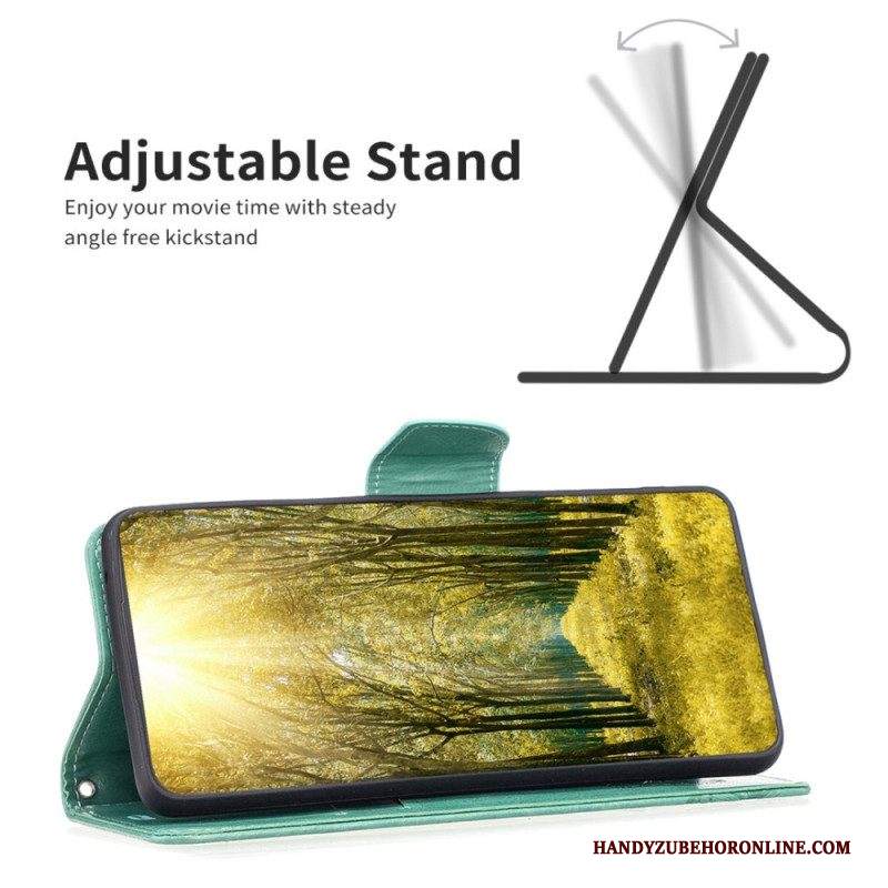 Custodia in pelle iPhone 14 Pro Max Farfalle Stampate Strappy