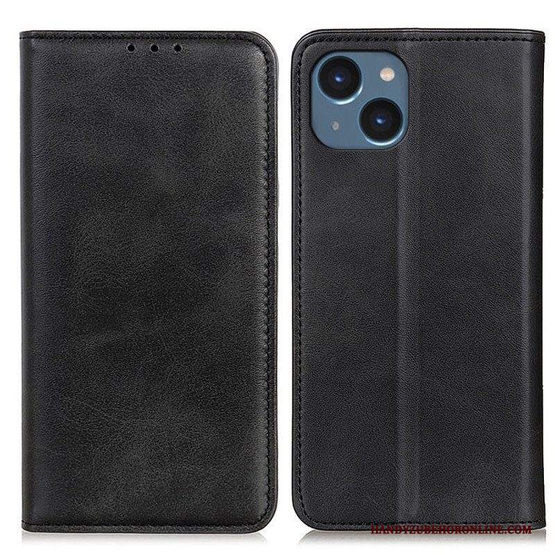Folio Cover iPhone 14 Plus Custodia in pelle Crosta Di Pelle Opaca